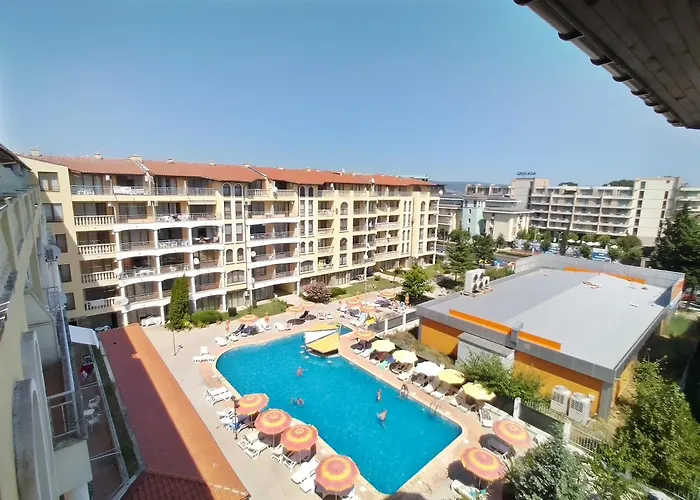 Aparthotel Royal Driusms lägenhet ligger i Slăntjev Brjag och har pool, vattenpark och säsongsöppen utomhusbassäng. Flygplatsen Burgas kan också nås inom 26 minuters bilresa.